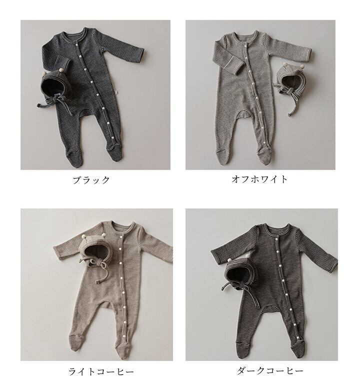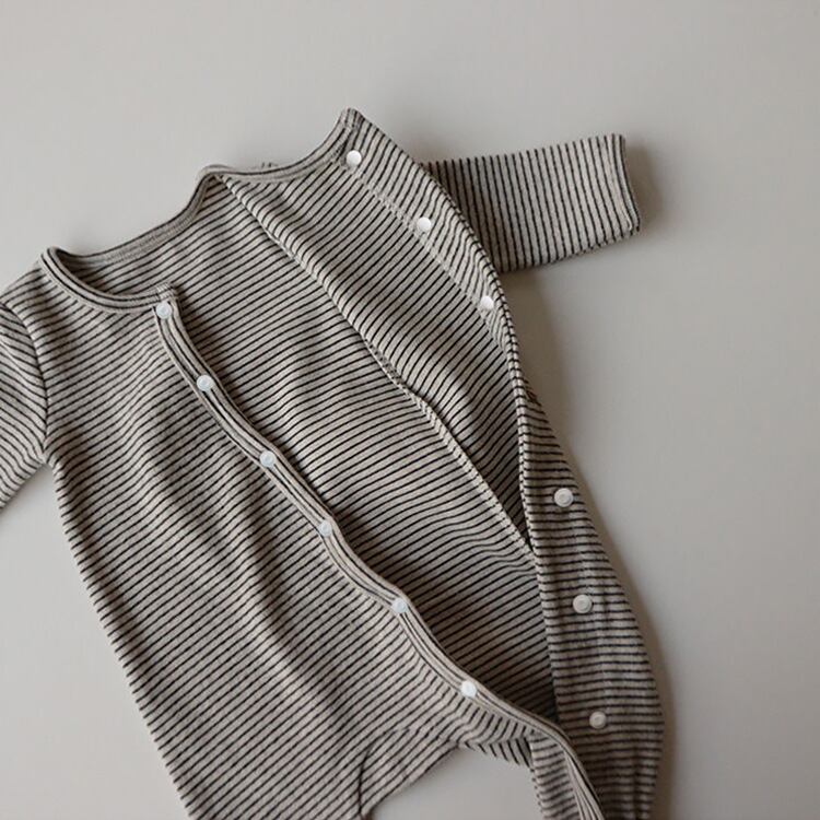ins 秋新作 ベビー服 ロンパース 長袖 ストライプ柄 前開き 可愛い カバーオール