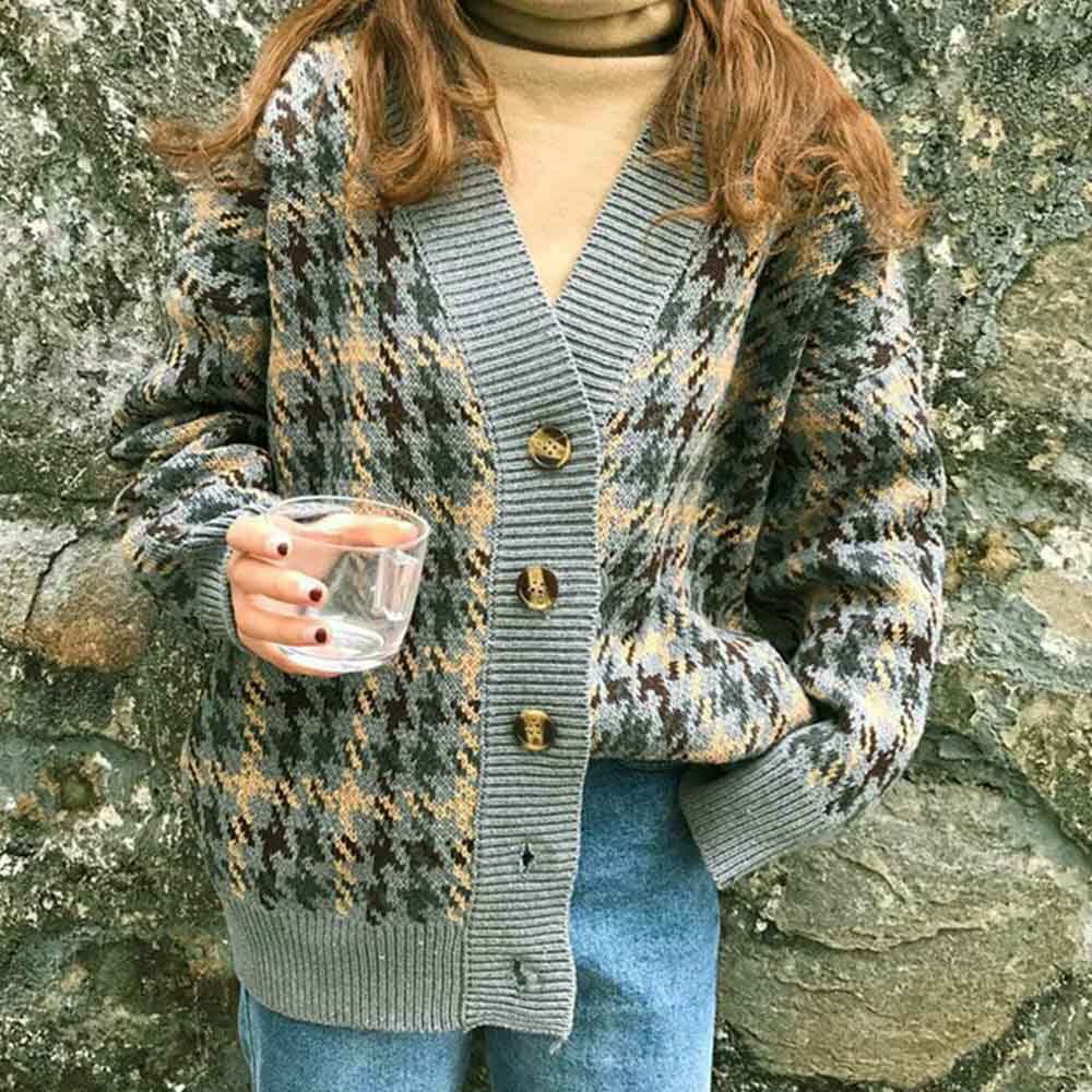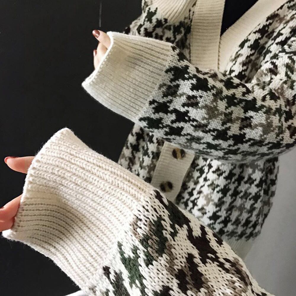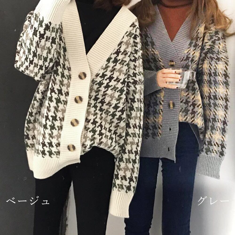 【日本倉庫即納】 千鳥柄カーディガン レディース 韓国秋冬