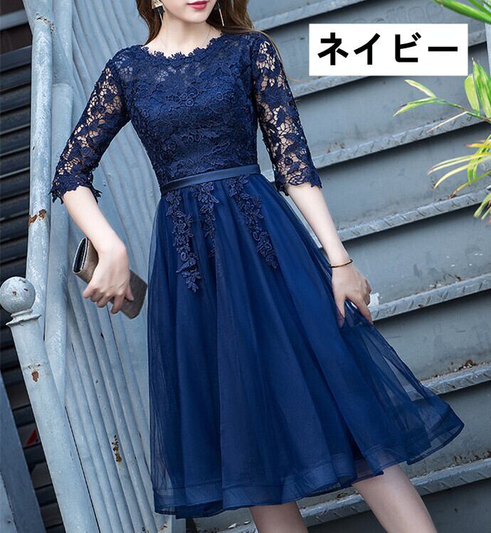 大きいサイズドレス Aライン レースワンピース 花柄 ブラックドレス