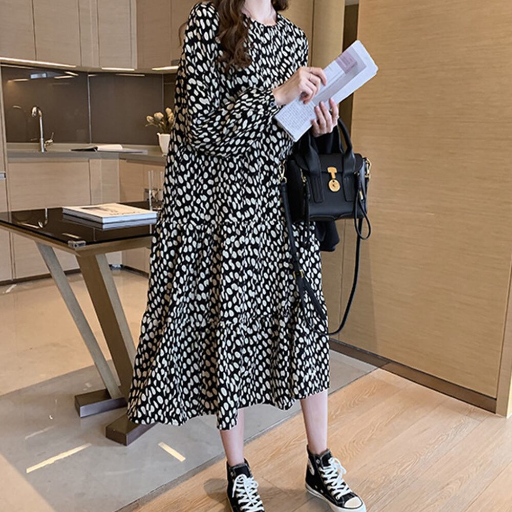 ワンピース ドット柄 シフォンワンピース レディース ロングワンピース 長袖