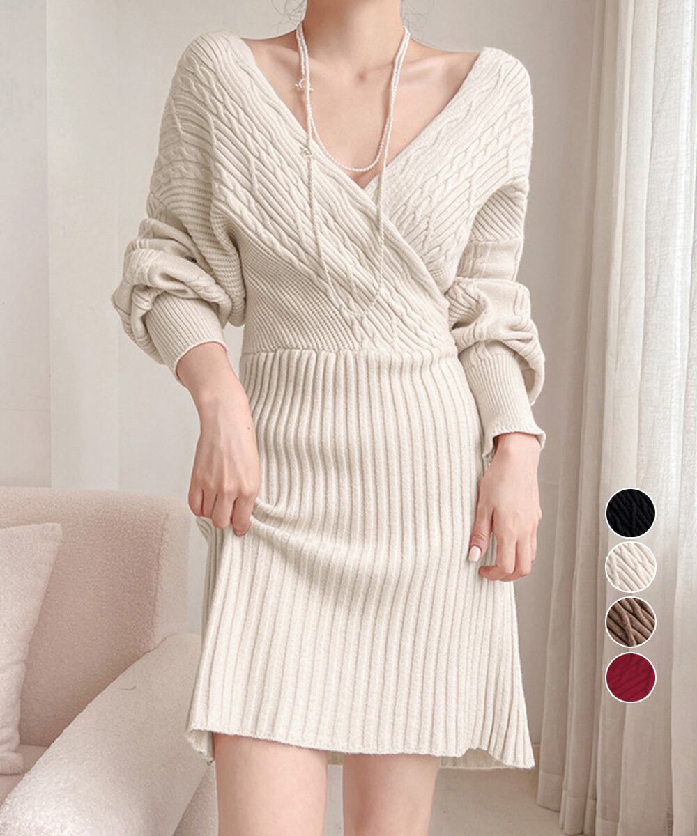 ニットミニワンピース 韓国ワンピース秋冬