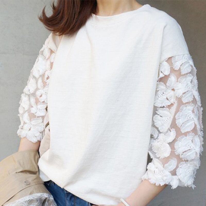 2025年春夏新作 tシャツ ins超人気 ラウンドネック ゆったり Tシャツ トップス レディース レース