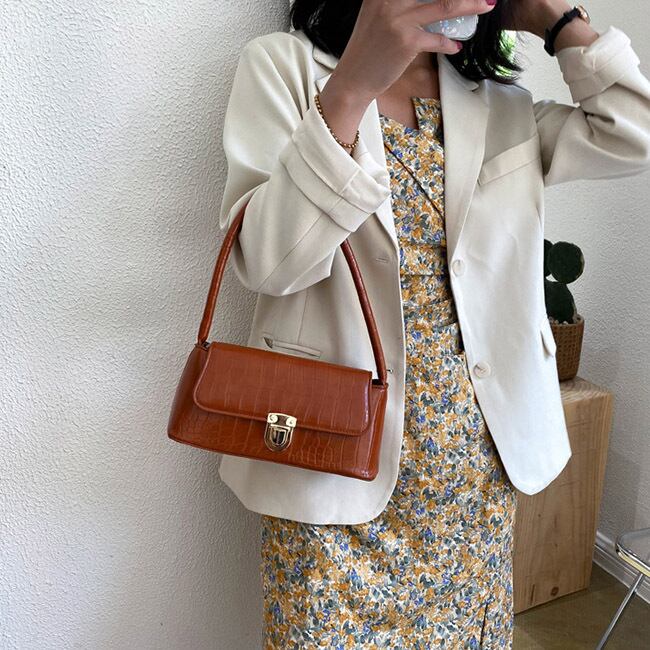 レディース クロコ調ミニ ハンドバッグ ショルダーバッグ レザー調 PUレザー ブラック