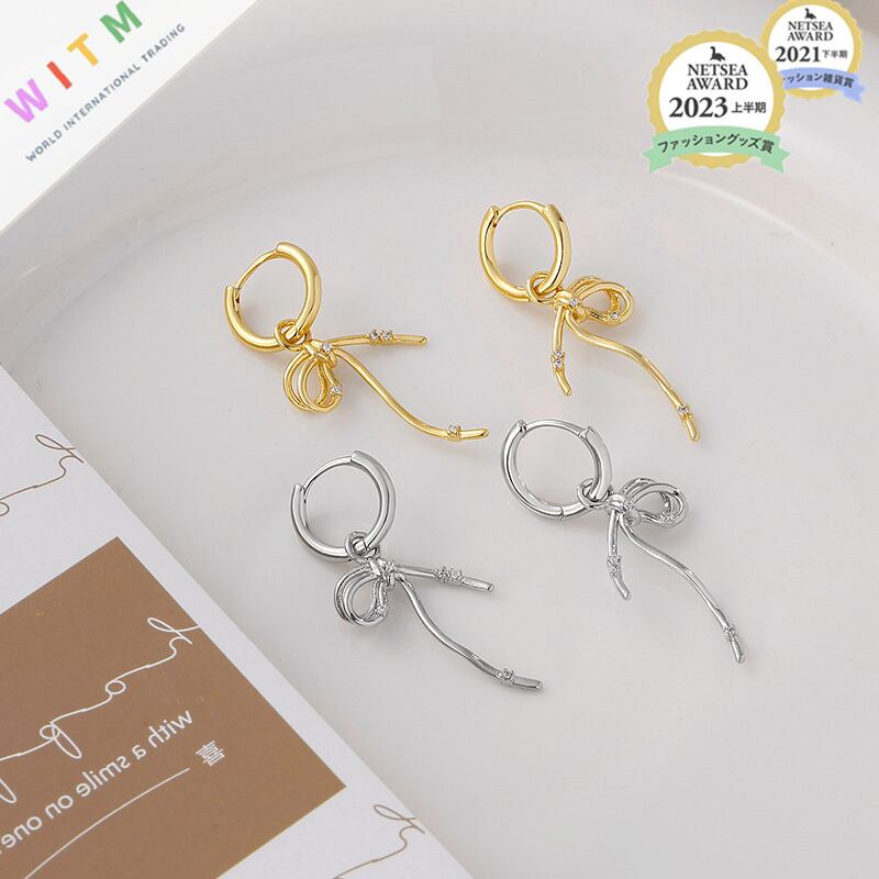 リボン ラインストーン ピアス S925 金属アレルギー対応 アクセサリー レディース 蝶結び オシャレ