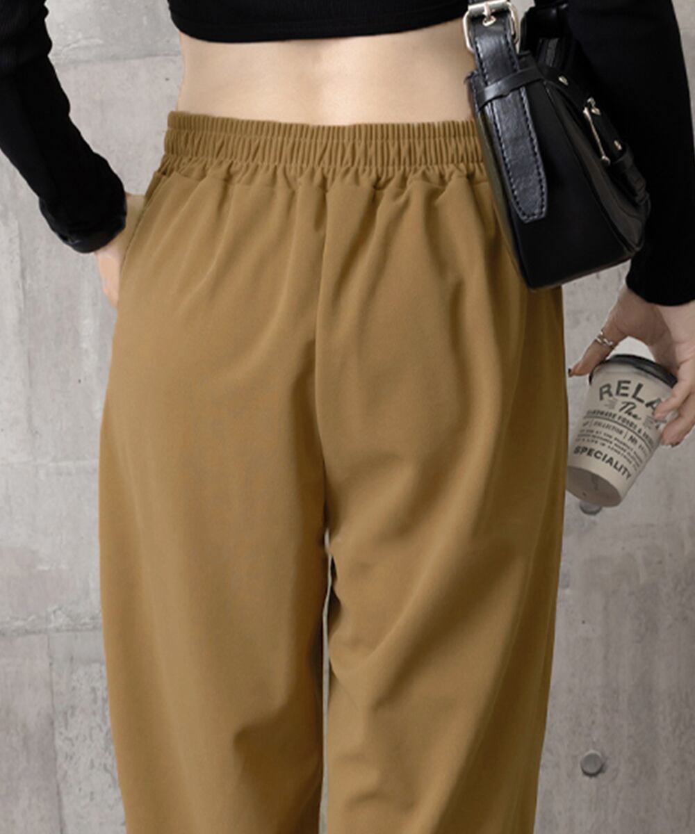 無地 ボトムス脚長 体型カバー 着回し ウエストゴム 快適