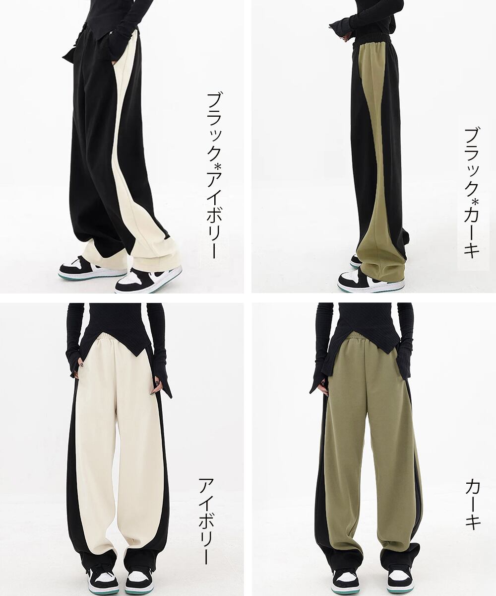 スウェットパンツサイド切り替ワイドパンツ