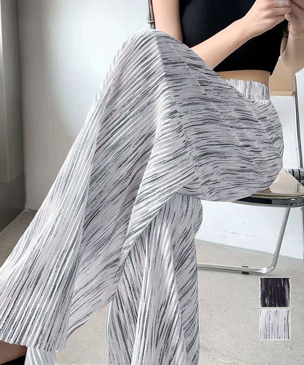 プリーツパンツ きれいめワイドパンツ春夏